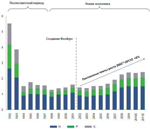 Потребление минеральных удобрений в России (млн т)