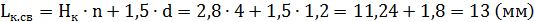 Lк.св=HK*n+1,5*d=2,53*7+1,5*1,4=19,8