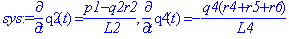 > restart; sys:=diff(q2(t),t)=(p1-q2*r2)/L2,