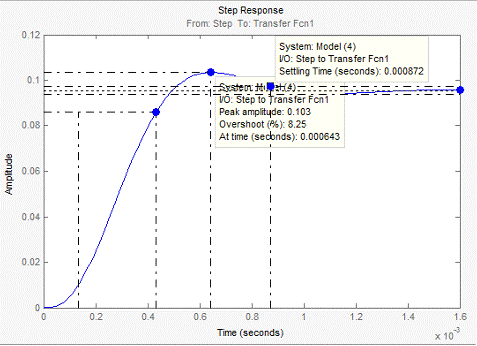 переходного процесса имеем время переходного процесса 0.000872, перерегулирование