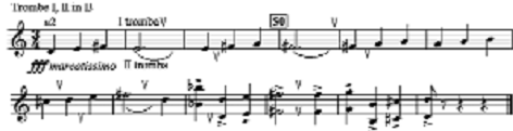 трубы играют вместе с валторнами и литаврами. Нельзя играть громче литавр, и