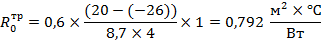 Для расчета выбираем большее значение сопротивление теплопередачи