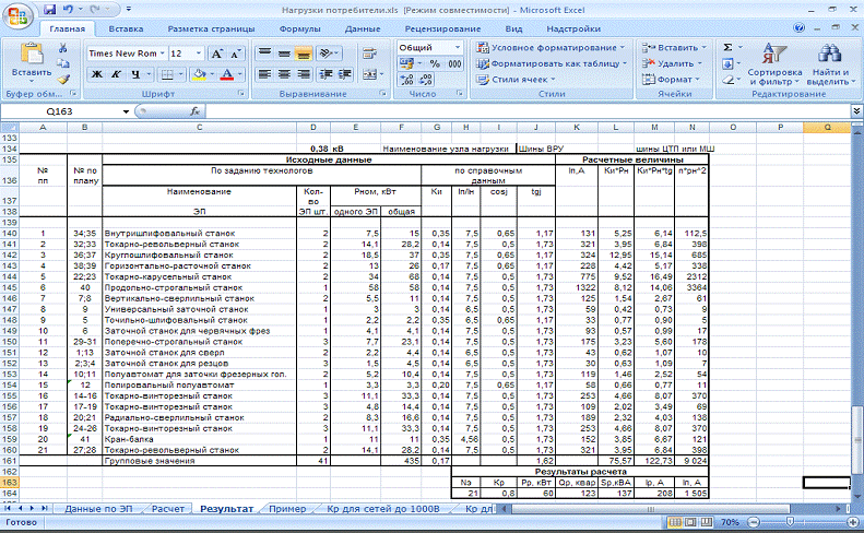 8. Расчет электрических нагрузок узлов электрической сети и всего