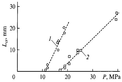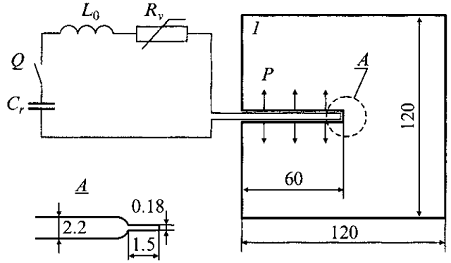 распространяется по две трещины, расходящиеся в среднем под некоторым углом