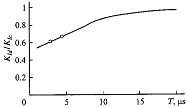 продолжительности воздействия T = 2.76 πs и KId = 0.67KIc для импульса