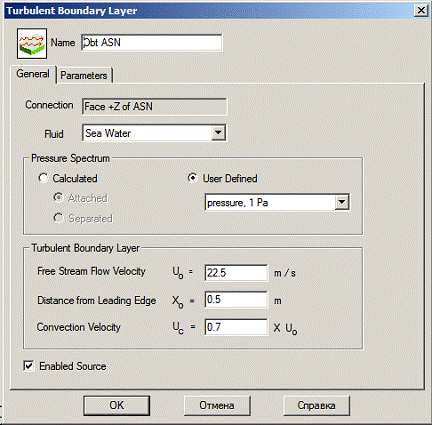 известна скорость движения торпеды под водой U=23 м/с, программа AutoSEA2 позволяет автоматически