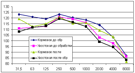 Рис.18. Сравнение шумов торпеды с шумами моря