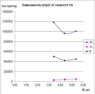 м/с, которой соответствуют оптимальные затраты З=422122,4 тис.грн/год.