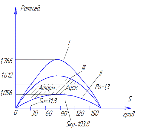 из условия равенства площадок ускорения и торможения предельный угол отключения