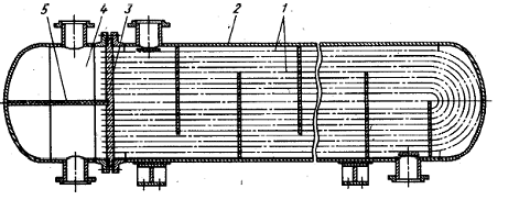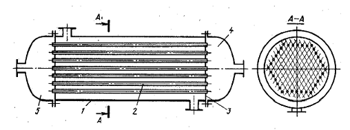 теплообменник представляет собой пучок трубок, помещенных в цилиндрическую