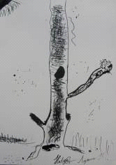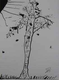 разный характер: на дереве нарисованы закручивающиеся линии в сочетании с