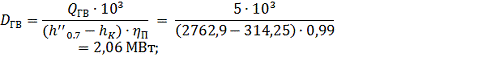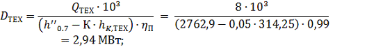 технологические нужды, МВт;»0,7 - энтальпия насыщенного пара после