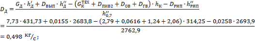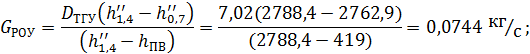 Потери пара внутри ТГУ принимаются равными 2,5% от расхода