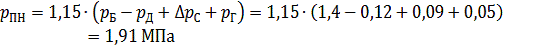 создаваемый насосом, ориентировочно принят равным рабочему давлению 1,4 МПа при