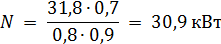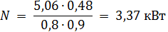 мощность на привод насоса и сравнивают ее с мощностью установленного