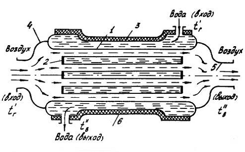 труб: трубное пространство, по которому движется горячий газ (воздух) и