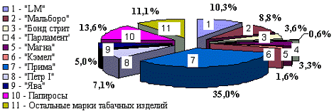«Петро I» (більше 7%) і Ява (5%), а також імпортні: «Мальборо» (8,8%), «Бонд