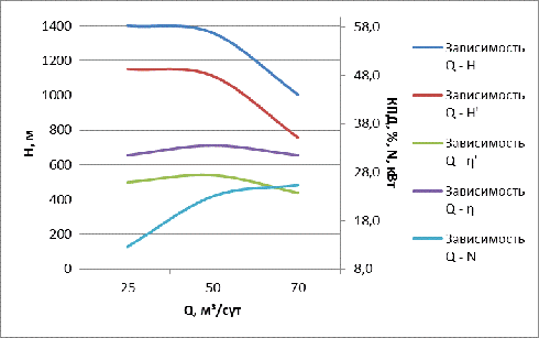 насоса определяют соответствующие им напоры и КПД. Значения параметров