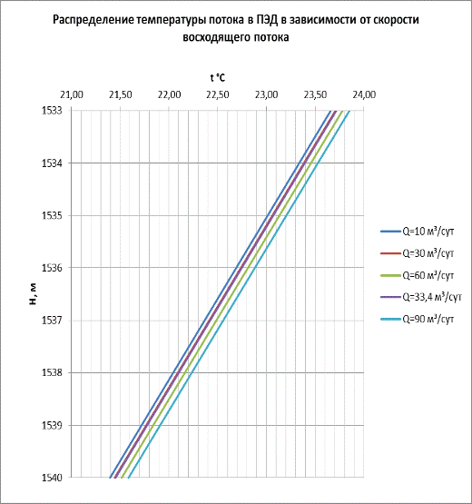 скважины. Были рассчитаны и построены кривые распределения температуры и