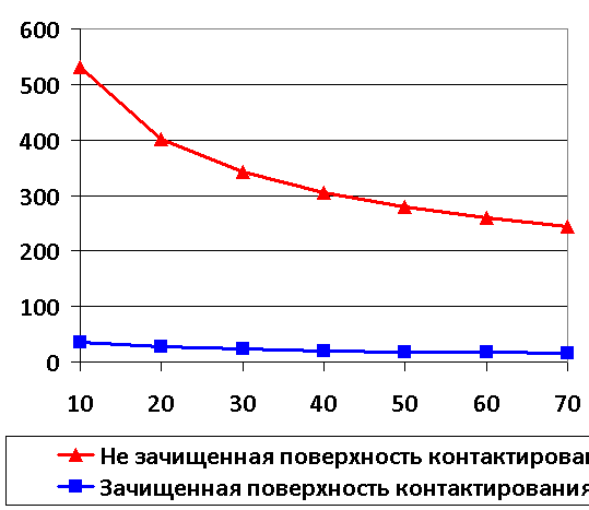 при незащищенных поверхностях контактирования накладок и рельсов при различных