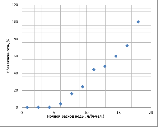 распределения определяется величина ночного расхода воды 30%-ной