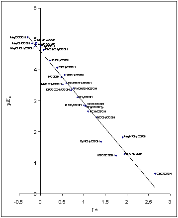 хорошо коррелирует с константами Тафта s* (см. рисунок).