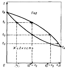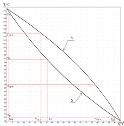 при постійному тиску у координатах t-х, у (температура-склад пари і рідини)