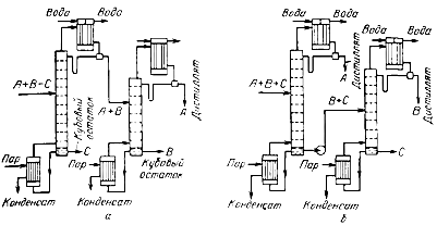 температурами кипіння 30-150 °С), вище атмосферного (при розділенні рідин з