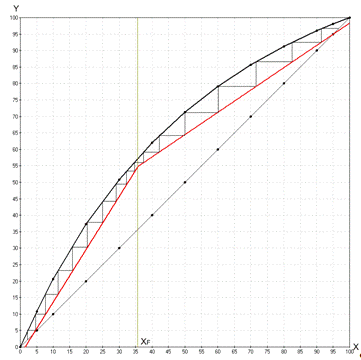 Рис.4. Зображення робочих ліній у діаграмі х-у