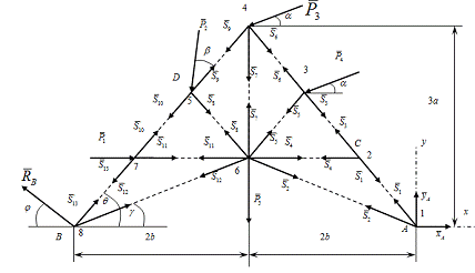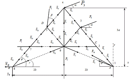 На рисунке 2 показаны пронумерованные узлы фермы с приложенными к ним активными
