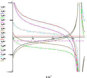 анализ значений реакций в зависимости от углов конструкции в математическом