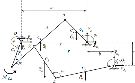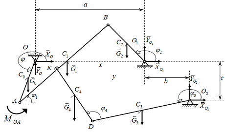 условий равновесия. Неизвестных сил, действующих на механизм семь:
