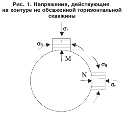 стенке скважины, уменьшаются на величину депрессии, кольцевые (тангенциальные)