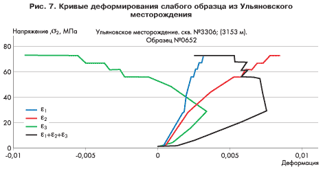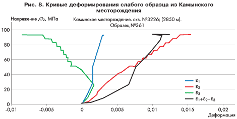 ярко выраженной анизотропии прочностных и деформационных свойств породы