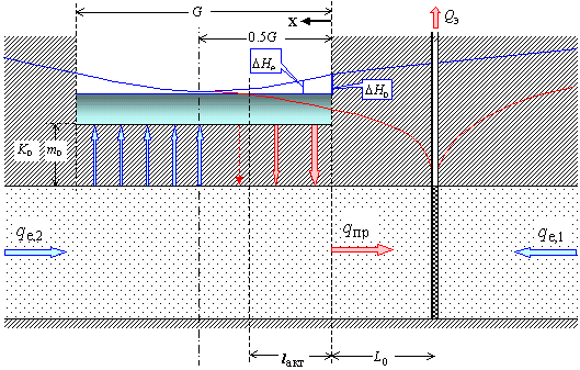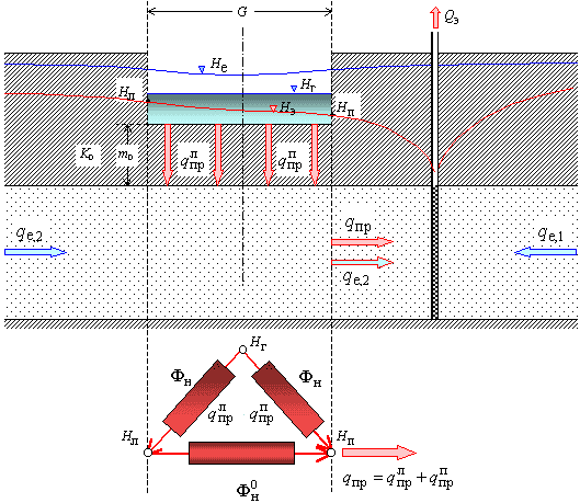 Рис. 7.3. Балансово-гидродинамическая схема работы водозабора у
