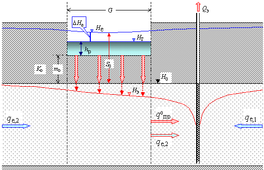 режим фильтрации - стационарный, т.е. дебит водоотбора полностью обеспечивается