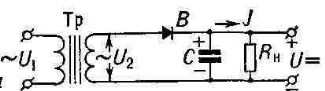 Основные элементы: трансформатор Тр, вентиль В и сглаживающий фильтр С.