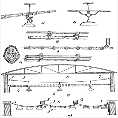 электропроводки широко применяют для устройства силовых и осветительных сетей в