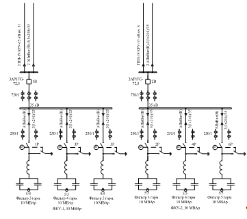 мощностью по 30 МВАр, настроенные на резонанс с 3-й, 4-й и 5-й гармониками. В