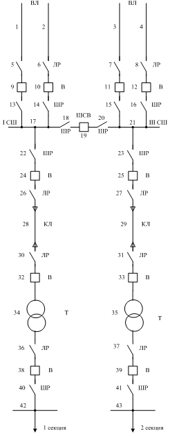 кВ содержит две системы шин с вакуумными выключателями, разъединителями,