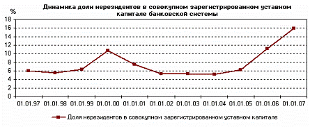 января 2007 г. Доля иностранных банков в активах действующих российских