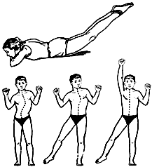отклонение корпуса назад с выпрямлением рук и последующим возвращением в и. п.