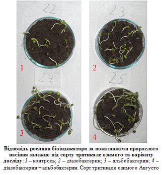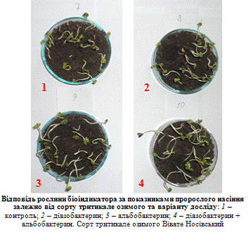 - діазобактерину та альбобактерину на посівах тритикале озимого за умов
