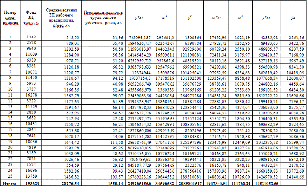 анализом, корреляционно-регрессионным анализом. Результаты расчетов представить
