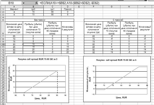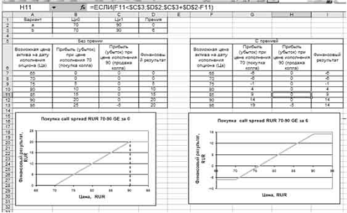 . "Бычий" спрэд - RUR 70 - 90 call spread - цена исполнения для