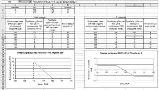 покупке пута и при цене исполнения 140 при продаже пута. При этом премия равна