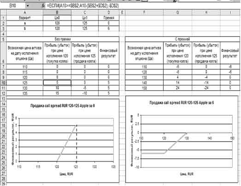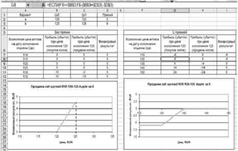 "колл” с определенной ценой исполнения (120 р.) и продает колл с большей