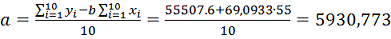 имеет один коэффициент регрессии b, не считая свободного члена a) и n=10 имеем