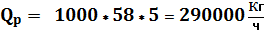 58 * 5 = 290000 кг/ч = 290 т/ч.