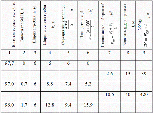 проводять в табличній формі (табл. 4), а одержаний об’єм грунту збільшують на